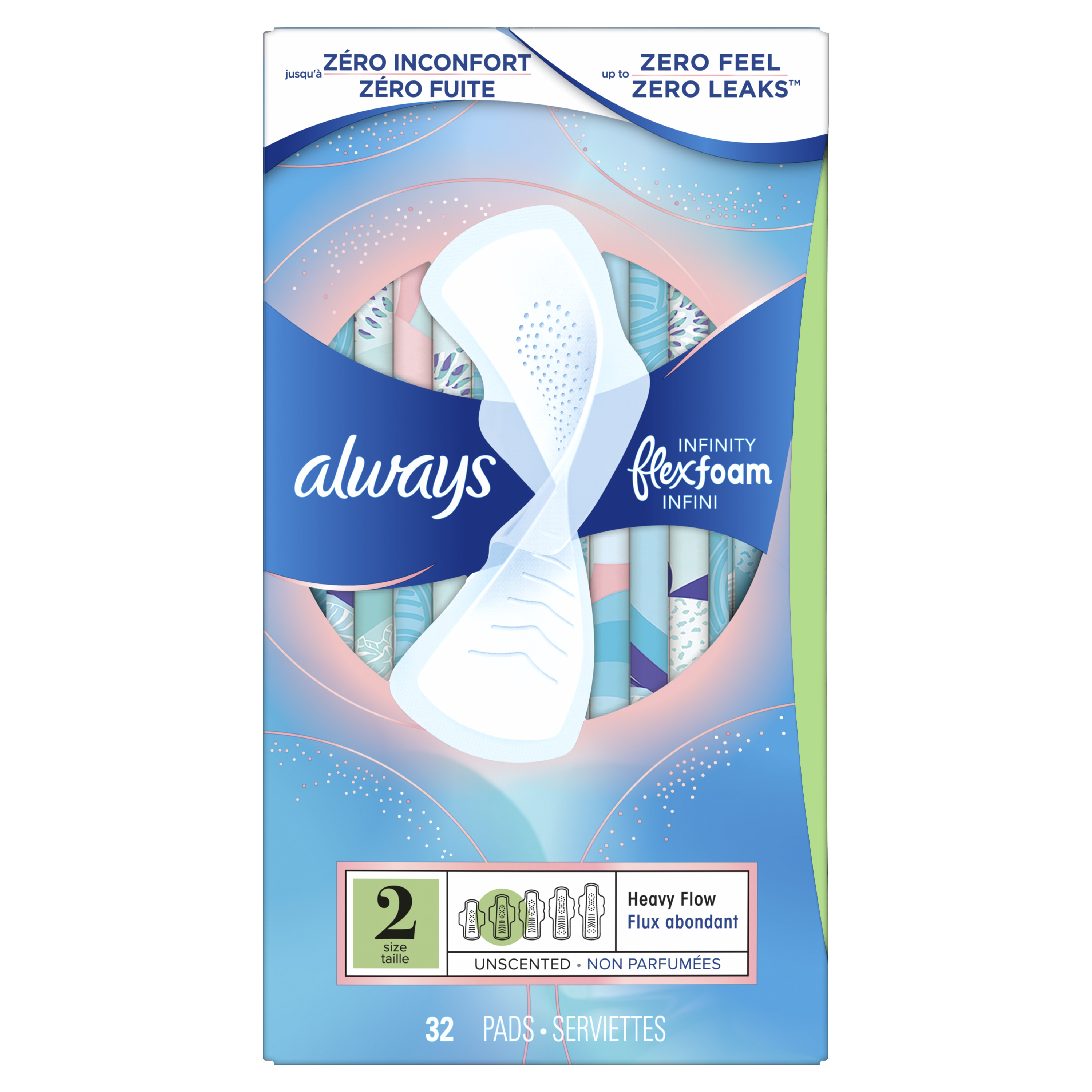 Les serviettes hygiéniques Always Infinity FlexFoam à absorption abondante offrent une sensation de confort et une protection incomparables. Incroyablement fines et flexibles, les serviettes FlexFoam accompagnent vos mouvements et non les comprimer. La protection Zero Feel est assurée grâce à des rainures qui épousent la forme de votre corps et à une absorption optimale.